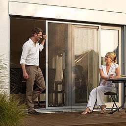 Ein-, zwei- oder mehrflügelig, mit oder ohne Montagerahmen, benötigt keinen Schwenkbereich. Einen gleichermaßen komfortablen wie praktikablen Schutz vor Insekten bieten unsere Schiebeanlagen.